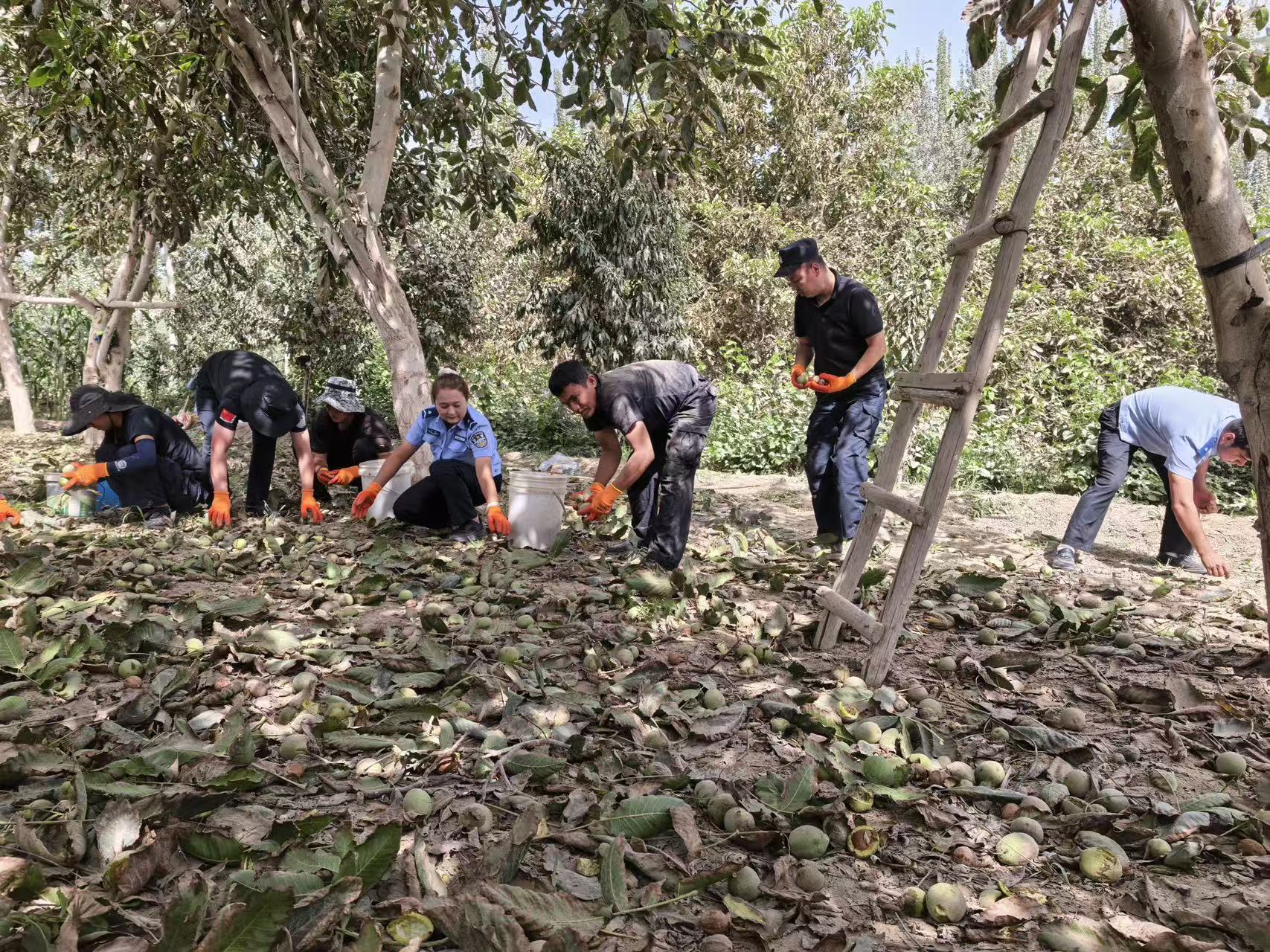 近日,于田縣公安局組織局機(jī)關(guān)30余名民輔警,成立了“為民服務(wù)隊”,前往阿日希鄉(xiāng)開展“助農(nóng)采摘核桃”志愿服務(wù)活動,用實際行動搭建起了一座警民“連心橋”。