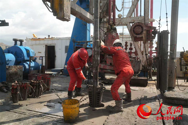 柴窩堡凹陷北緣油氣資源潛力評價項目柴探2井施工現(xiàn)場。人民網(wǎng)記者唐宋攝
