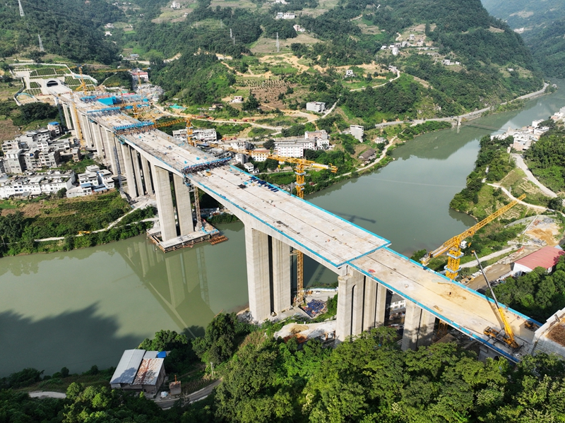 9月17日,由中國鐵建大橋局承建的渝昆高鐵鹽津南站白水江四線特大橋順利合龍,這一座“站臺橋”,既是跨越天塹連通川滇的橋,也是渝昆高鐵鹽津南站的一部分,大橋合龍標志著橋隧占比高達87.4%的渝昆高鐵建設(shè)取得關(guān)鍵性突破,為全線按期建成通車奠定了堅實基礎(chǔ)。