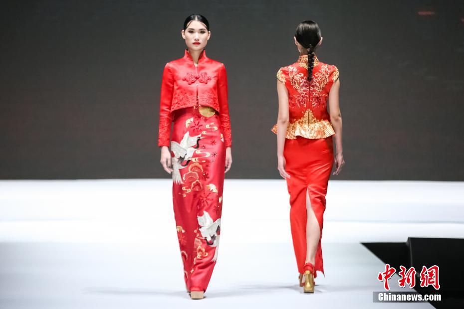 11月12日,模特在T臺展示禮服。當日,NE·TIGER品牌秀暨2017中國(潮州)國際婚紗禮服周品牌評選頒獎晚會在廣東潮州舉行。中新社記者熊然攝