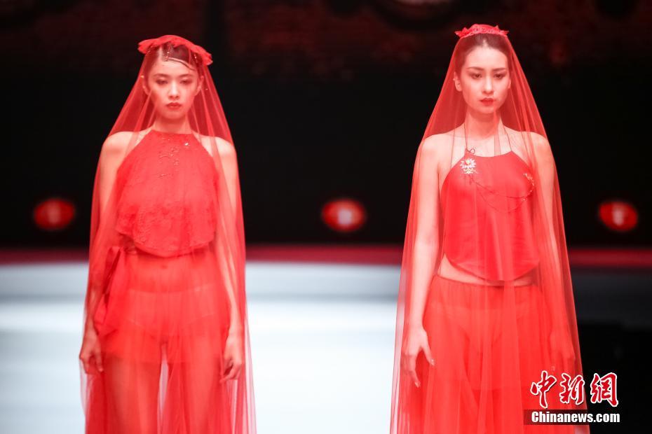 11月12日,模特在T臺展示禮服。當日,NE·TIGER品牌秀暨2017中國(潮州)國際婚紗禮服周品牌評選頒獎晚會在廣東潮州舉行。中新社記者熊然攝