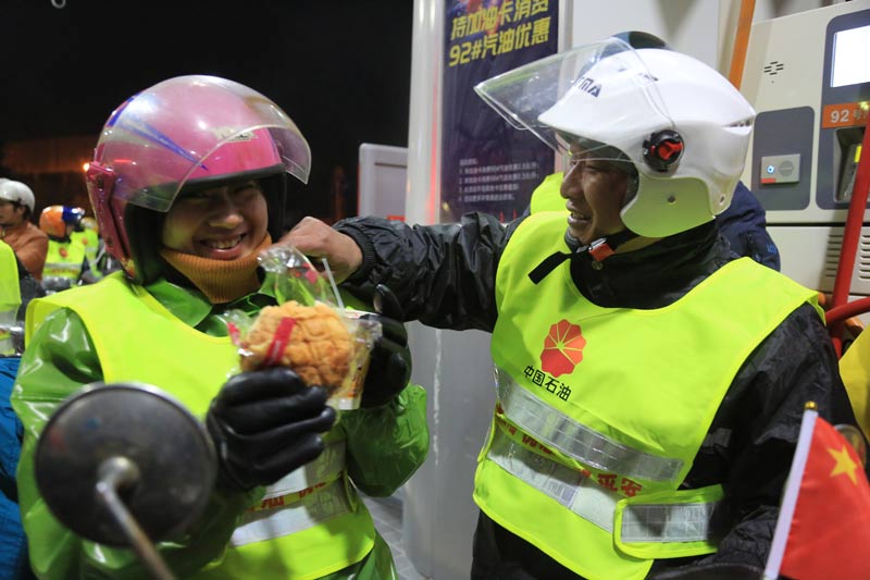 1月21日起,中國石油福建、江西、湖南、湖北廣西、浙江、貴州7省121座加油站,為返鄉(xiāng)鐵騎們接力提供免費加油等幫助。