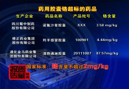 藥用膠囊鉻超標(biāo)藥品及鉻含量(數(shù)據(jù)來源:央視)