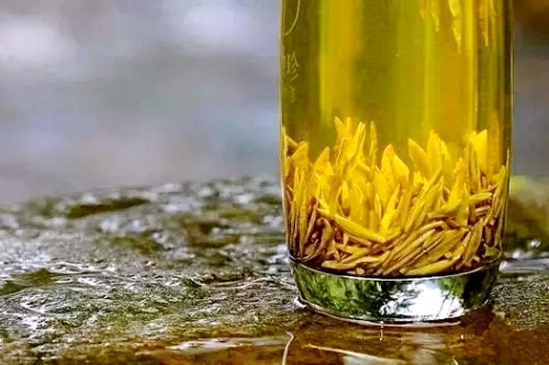 1999年春天,繆述鋼在滿園的茶青中,發(fā)現(xiàn)幾片金黃色的嫩葉,亮黃得搶眼。于是,就隨手把這幾片黃葉子揀了回來(lái),并單獨(dú)炒制成茶。他發(fā)現(xiàn),泡出的茶水也呈金黃色,味道更醇更香。從那以后,這株野生茶樹(shù)被他們兄弟倆培育出了一個(gè)新品種。