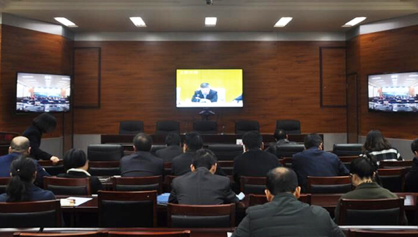 11月7日,全國小微企業(yè)金融服務(wù)電視電話會議召開,我縣相關(guān)單位和企業(yè)負責人在我縣分會場收聽收看。(景淑寧)