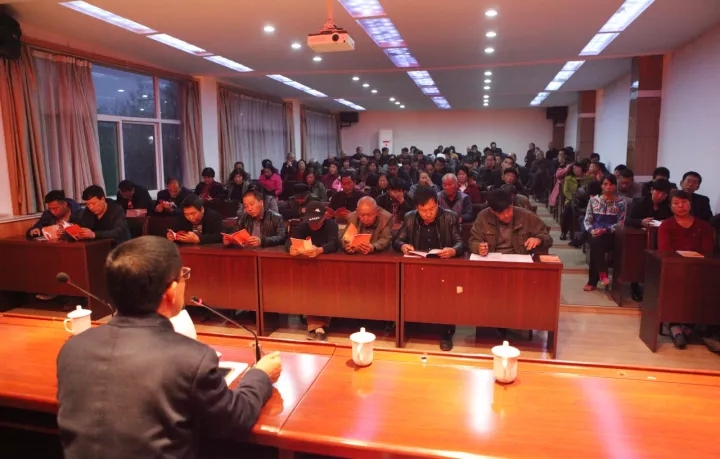 在開班儀式上,振興村黨總支組織全體黨員干部、群眾開展黨的十九大報告集體學習活動。振興村黨總支書記牛扎根指出,為了深入貫徹落實學習十九大報告中習近平總書記的講話精神,振興村黨總支共同整理出關于十九大報告365條“主題金言”,并裝訂成冊,要求全體黨員干部、全體村民人手一冊,每天學習一條,做好記錄和筆記,存好檔案,用十九大精神武裝頭腦、指導實踐、推動工作。