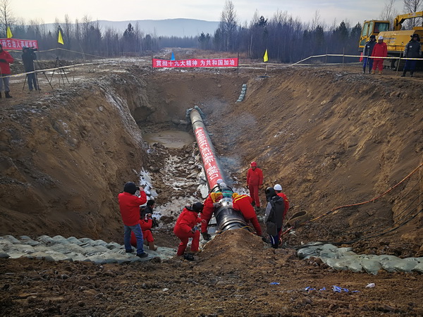 中俄原油管道二線工程北起黑龍江大興安嶺漠河縣興安鎮(zhèn)的漠河首站,經過大興安嶺地區(qū),途經黑龍江、內蒙古兩省,止于大慶市林源輸油站,全長941.8公里。工程于2016年8月13日正式開工建設,施工高峰期投入人員5000余人,設備3000余臺套,穿越了500公里原始森林無人區(qū)和多年凍土地帶,經歷了漫長冬季和最低零下50攝氏度的極寒考驗。