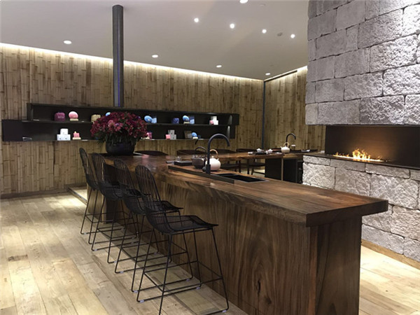 盡管山青花燃的負責人說,精雕細琢絕不是山青花燃想要展現(xiàn)的。諸多云南元素的運用,斑駁古樸的原石墻,紋理清晰的原木地板,帶著高原陽光氣息的竹片墻……這些都在有力還原普洱茶粗獷的質(zhì)感和堅實的力量??梢娍此麄儗毠?jié)處理的考究與用心。