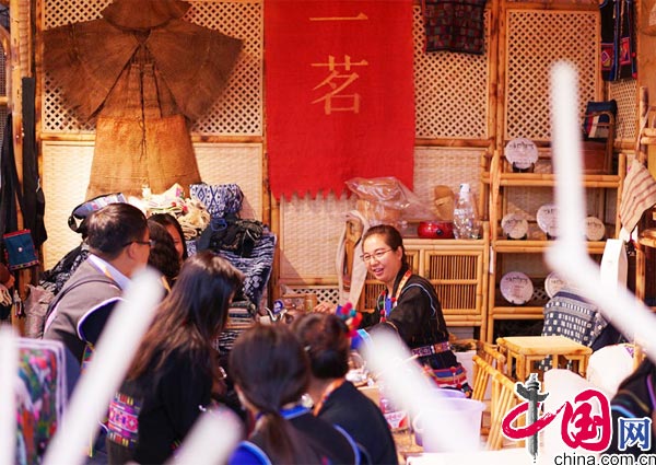 云南西雙版納組團由州政府代表團領(lǐng)導帶隊,打造富有民族風情的展示區(qū),推廣西雙版納茶文化;云南臨滄組團展區(qū)內(nèi)設(shè)立舞臺,為前來品茗的顧客呈現(xiàn)云南少數(shù)民族地區(qū)獨特的舞蹈邊品茶,邊聽民族樂器演奏,展館富有云南特色,還展示了民族元素突出的牛角、木鼓等物,提供體驗服務(wù),顧客可以體驗民族樂器的演奏,學習民族舞蹈;