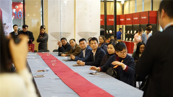 由貴州省畢節(jié)市七星關(guān)區(qū)政府代表和來自廣州、深圳、上海、臺灣等地的茶商、茶界知名人士?,F(xiàn)場品飲了由勐海雨林古茶坊茶葉有限責(zé)任公司提供的雨林珍藏,茶湯呈絢爛艷麗的濃金色,香氣濃郁,乍聞是霸氣鉆鼻的陳香,隨后糯香明顯,最后是清爽的蜜蘭香,茶湯入口更加有穿透力,輕輕一小口,苦甜感迅速在口腔炸開,猛烈但是舒適,回甘迅速襲來,生津汩汩,三兩杯就會酣暢淋漓。米飯香,稻花香,糯香,蘭香交替而來,意猶未盡。湯感已經(jīng)粘稠,但入口卻是感覺輕輕得“融化”在口腔。第二道現(xiàn)場品飲了畢節(jié)區(qū)特色茶品,并分享了當(dāng)?shù)氐牟枞~種植傳統(tǒng)和茶產(chǎn)業(yè)的發(fā)展現(xiàn)狀。