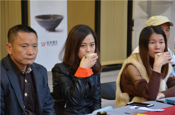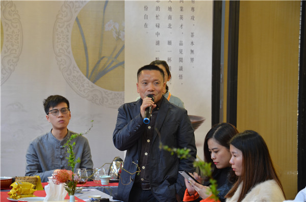 來自惠州茶促會的茶友們分享了由安徽省黃山市祁門縣孫義順安茶廠提供的兩道茶,第一道是孫義順安茶,是一款介于紅茶與綠茶之間,色澤烏黑,湯濃微紅,味香而澀,有著普洱生茶的霸道。丘會長評價此茶味道甘甜,令人回味,李先生則覺得這款茶口感醇正有厚度,滋味滑口生津;有茶友評價茶的湯純凈、茶味細(xì)膩、口感爽滑、入口甘甜、回甘快。茶會第二道茶是箬香炭焙熟普,跟安茶在工藝上有著異曲同工之妙,具有清熱止血、解毒消腫、降至抗衰等保健功能。茶友們在韻味綿長的茶味中感受別具一格的茶文化魅力。