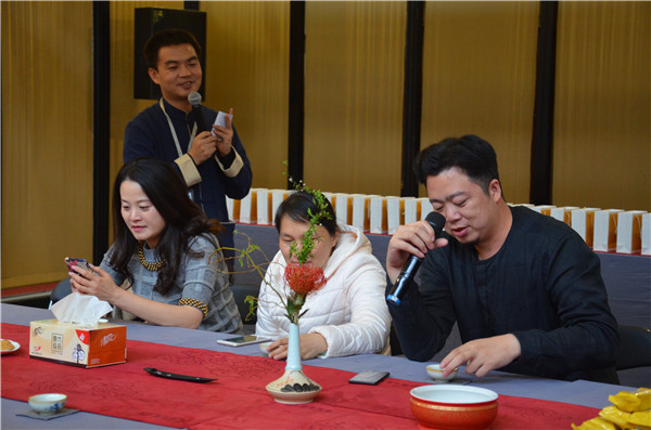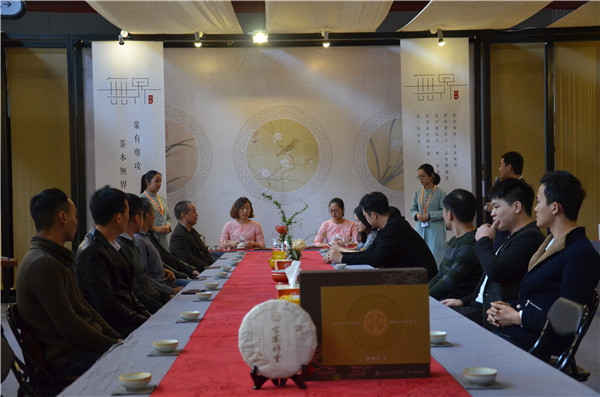來(lái)自建筑設(shè)計(jì)領(lǐng)域的精英和愛(ài)茶人士分享了云南下關(guān)沱茶(集團(tuán))股份有限公司的兩道茶:下關(guān)景邁古樹(shù)餅茶和1959金蒼洱沱茶。第一道下關(guān)景邁古樹(shù)茶,帶有強(qiáng)烈的山野氣韻和獨(dú)特優(yōu)雅的蘭香,茶友們紛紛凝神聚氣,端杯細(xì)細(xì)品味。第二道1959金蒼洱沱茶,以班章和易武古樹(shù)茶拼配而成,香氣清甜而后勁濃厚,和著一曲古箏樂(lè)下肚,更加沁人心脾?,F(xiàn)場(chǎng)茶友就熟茶的功益和拼配工藝感到好奇與茶藝師做了深入的互動(dòng)。熟茶經(jīng)過(guò)發(fā)酵,茶多酚和咖啡堿含量較低,性溫和,更適合冬天,能起到暖胃、抗氧化、抗衰老的功效。