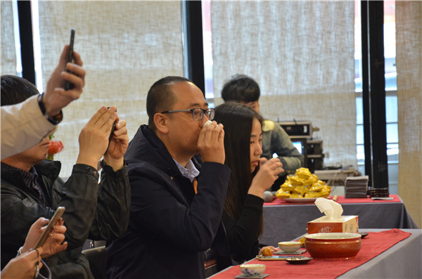 以“禪之音”主題樂(lè)團(tuán)以禪、茶、樂(lè)為表現(xiàn)元素,為現(xiàn)場(chǎng)的茶友們奉上了一場(chǎng)視、聽(tīng)、品的茶文化盛宴?,F(xiàn)場(chǎng)品飲了來(lái)自福州孝文家茶業(yè)有限公司的兩道茶:國(guó)風(fēng)肉桂和牛肉。第一道國(guó)風(fēng)肉桂采自武夷山核心景區(qū)名巖山場(chǎng),國(guó)風(fēng)肉桂品質(zhì)精致,口感上乘。第二道孝文家茶牛肉,扎根武夷山富饒的土壤,飽飲清冽的泉水,轉(zhuǎn)化為豐富的葉片內(nèi)質(zhì)。加上專業(yè)的采摘、做青與精制碳焙,使得愛(ài)茶之人無(wú)不為喝到這里的茶而驕傲。現(xiàn)場(chǎng)禪意裊裊、茶香濃郁的氛圍吸引了諸多茶友駐足凝神,這場(chǎng)素簡(jiǎn)自然、別具匠心的茶樂(lè)演繹贏得了熱烈的掌聲。