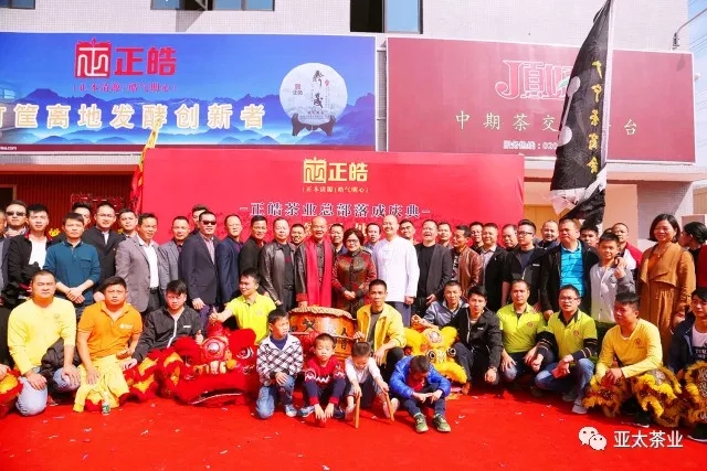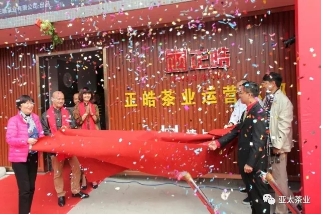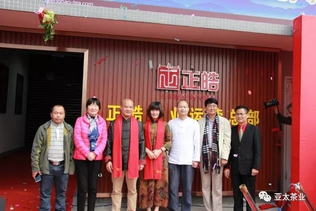 伴著震耳的鼓聲、鞭炮聲、喝彩聲,正皓茶業(yè)掌門人潘堅及其夫人,廣東省茶業(yè)行業(yè)協(xié)會秘書長張黎明,廣寧茶商會會長吳世海,南海攝影家協(xié)會會長陳景明,云南農(nóng)業(yè)大學(xué)博士生導(dǎo)師、普洱茶學(xué)院教授周紅杰,廣東中盛旅游開發(fā)有限公司董事長、廣寧茶商會副會長陳國成等領(lǐng)導(dǎo)一起揭開了運營總部門面招牌的神秘面紗,“正皓”兩個大字赫然入目。