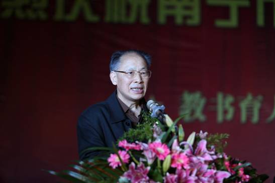 隆安縣教育局副局長(zhǎng)黃吉在慶典儀式上發(fā)表講話