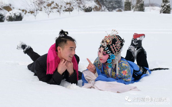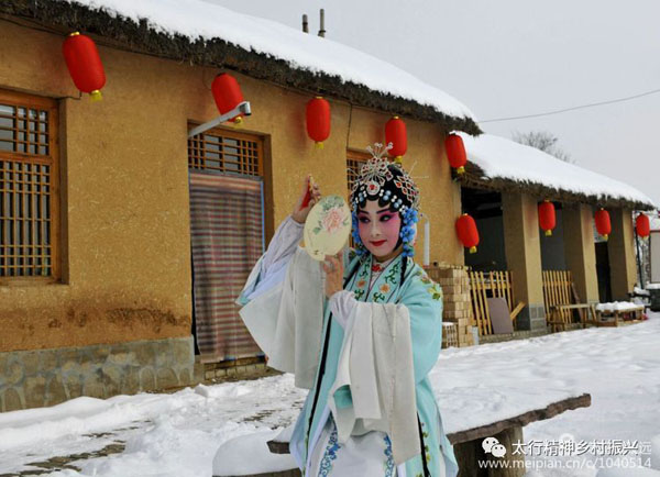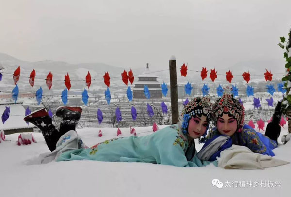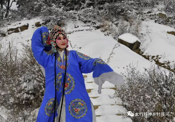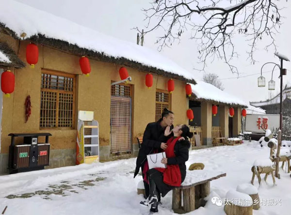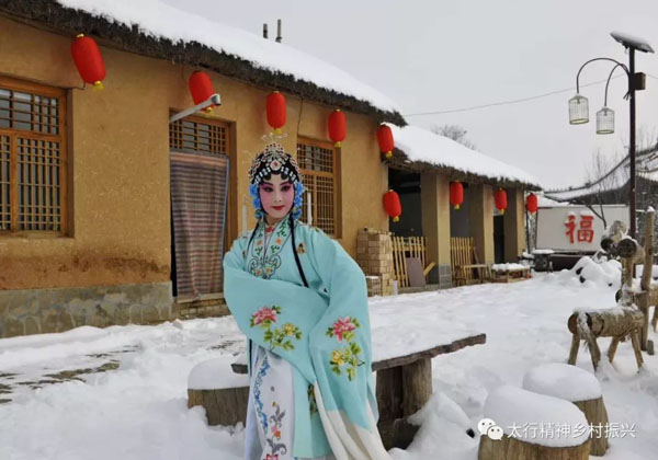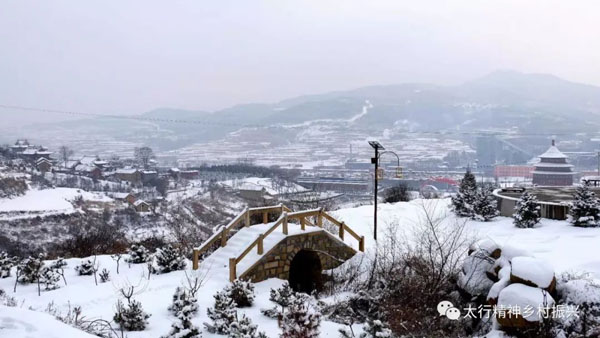 瑞雪紛飛落太行,振興小鎮(zhèn)裹銀裝。