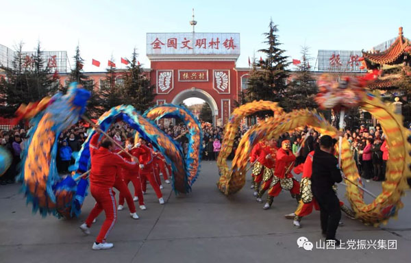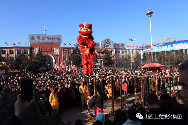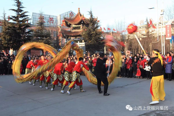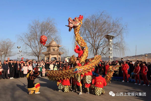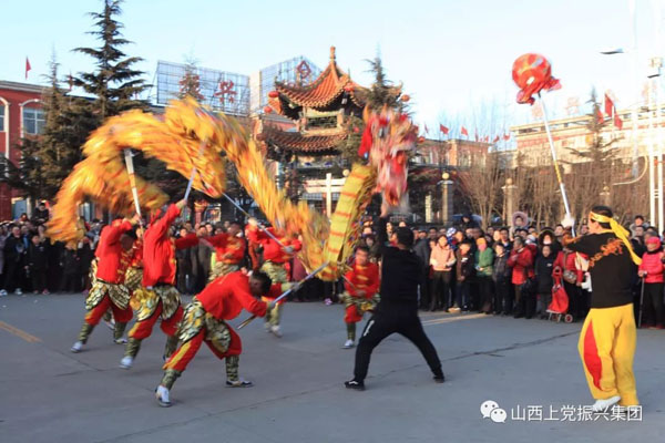 長治縣振興鄉(xiāng)村生態(tài)旅游區(qū)舞龍舞獅競翩躚,漢唐演藝樂翻天