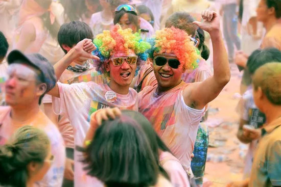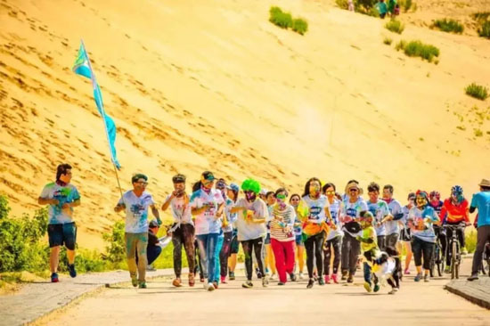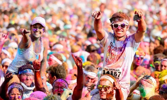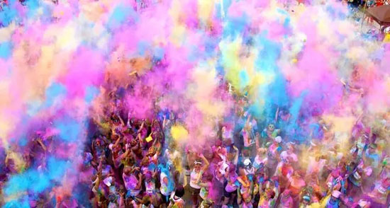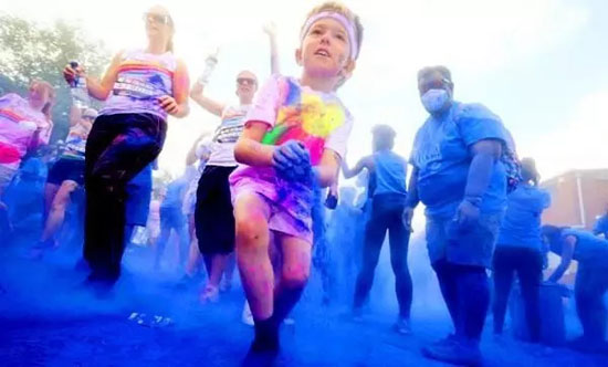 地球上最歡樂的5公里,不計時、不比速。彩跑員要陸續(xù)穿過激昂紅色、忠誠紫色、光明黃色、自由藍色和活力綠色五色彩粉站,在漫天撒粉者的祝福中到達終點,在互潑彩粉過程中進行青春的狂歡!