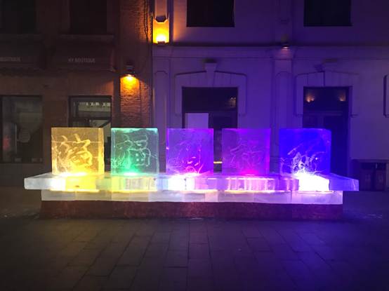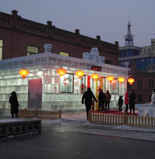 “先有傅家甸,后有哈爾濱”,老道外的源頭文化是商文化。在道外南三道街,傅家店已再現(xiàn),不過這個(gè)傅家店是108塊冰壘起來的,還有冰院子,冰桌子,最為新奇的是在冰房子內(nèi)有龍江特色美食火鍋,連老外都來關(guān)注。冰房子前面就是“正陽街群英會(huì)”大型人物冰景浮雕,匯聚商賈巨子,追憶當(dāng)年繁華。