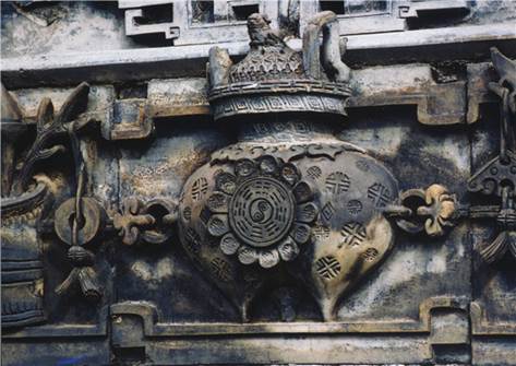彩繪方面,首選是豐富多彩的表現(xiàn)手法,如:博古彩繪、蘇式彩繪、旋了彩繪等。內(nèi)容有博古圖案、人物、山水、花鳥等。色彩搭配和諧悅目,有的還加以金粉裝飾,鮮明的色彩使古樸的大院顯得活潑而有生氣。