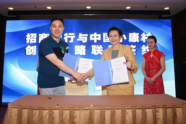 產(chǎn)業(yè)興離不開金融血液,為促進(jìn)鄉(xiāng)村振興發(fā)展,為會(huì)員單位提供有力的資金支持,中國(guó)小康村創(chuàng)新戰(zhàn)略聯(lián)盟與招商銀行簽約,中國(guó)小康村創(chuàng)新戰(zhàn)略聯(lián)盟常務(wù)副主席兼秘書長(zhǎng)郭英與招商銀行北京支行行長(zhǎng)郭立恂分別代表雙方機(jī)構(gòu)簽約,招商銀行為中國(guó)小康村創(chuàng)新戰(zhàn)略聯(lián)盟授信人民幣50億元,用于鄉(xiāng)村產(chǎn)業(yè)升級(jí)。