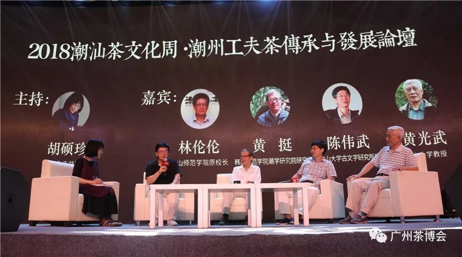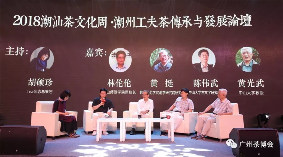 5月24日下午,嶺南茶風(fēng)·2018潮州工夫茶傳承與發(fā)展論壇在2018春季廣州茶博會(huì)期間舉辦。論壇以“四海潮人的生命簡史——以工夫茶為中心視點(diǎn)”為主題,由著名藝術(shù)家胡碩珍女士主持,特別邀請韓山師范大學(xué)原校長林倫倫、韓山師范大學(xué)潮學(xué)院研究院研究員黃挺、中山大學(xué)古文字研究所所長陳偉武、中山大學(xué)教授黃光武四位潮學(xué)專家以工夫茶之名,解析四海潮人的生命簡史。