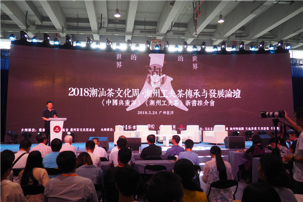 5月24日下午,“2018潮汕茶文化周”的主題論壇在廣交會(huì)琶洲展館春季茶博會(huì)1號(hào)會(huì)議室隆重舉行,論壇以“四海潮人的生命簡(jiǎn)史”為題,現(xiàn)場(chǎng)Led屏主背景畫面以“世界的潮人,潮人的世界”呈現(xiàn),資深茶人悉數(shù)到場(chǎng),氣氛熱烈。