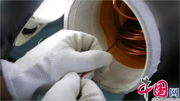 為了練好下線技術(shù),我找來廢舊的銅線反復(fù)去練習(xí),穿線的手經(jīng)常撞在鋼制的殼體上,虎口上方磨出了又厚又硬的老繭;每天回家,吃飯的時候,手都握不住筷子;就連晚上做夢還在穿線。慢慢地,我的雙手和銅線好像有了心靈感應(yīng),它開始聽我的話了,我能讓銅線在狹小的槽孔內(nèi)自如地穿行。我的雙眼好像也有了“透視”功能,仿佛能清晰地看到銅線在殼體內(nèi)前進的位置。