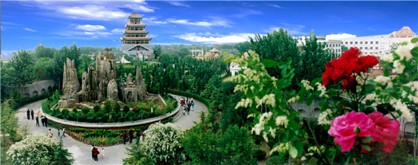 京華園景區(qū)的布局依據(jù)祖國(guó)版圖的造型而設(shè)計(jì),圍墻蜿蜒酷似長(zhǎng)城,大門(mén)仿山海關(guān)按1:1的比例而建,恢弘、磅礴、雄厚、巍峨。山海關(guān)、嘉峪關(guān)、居庸關(guān)挺拔屹立;黃河、長(zhǎng)江橫貫其間;海上的臺(tái)灣寶島、索道與陸地相連;雕梁畫(huà)棟、氣勢(shì)恢弘的天地宮,堪稱(chēng)是一個(gè)集中華民族優(yōu)秀歷史文化之宮殿。由數(shù)十位民間工藝大師精心雕刻的一百多尊漢白玉雕像,栩栩如生、惟妙惟肖,“中原名人館”、“名臣名將府”、“歷代名君殿”,浩浩歷史,名君、名臣、名將、名人,永垂不朽!是進(jìn)行愛(ài)國(guó)主義教育的理想基地。還有用戲劇手法建制的十殿閻君審奸臣,打入十八層地獄的“夢(mèng)幻世界”,運(yùn)用電子工藝,光纖技術(shù),舞臺(tái)美術(shù),使游人身臨其境,既驚心動(dòng)魄,又拍案叫絕。而是導(dǎo)游與現(xiàn)實(shí)生活相結(jié)合的精彩講解,更使人回味無(wú)窮,深受教育和啟發(fā)。