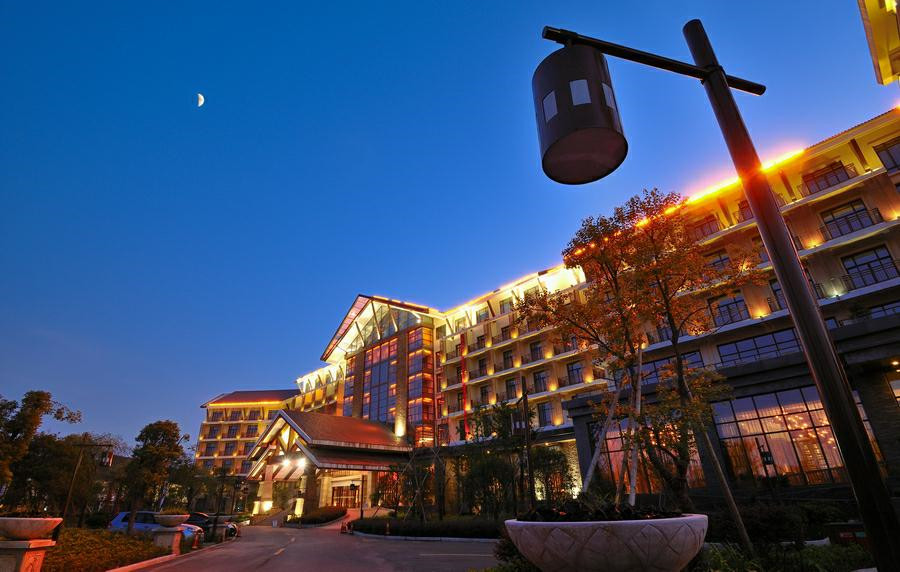 度假區(qū)的溫泉項目于2009年11月喜迎八方賓客,酒店項目于 2010年11月隆重開業(yè)。酒店總建筑面積約2萬平方米,擁有206間各式客房、可同時容納400多人的多功能廳及大小會議室、中西餐廳等多種服務設施,以時尚、簡約、自然的風格,為各界賓朋營造輕松、休閑、舒適和自然生態(tài)的度假氛圍。