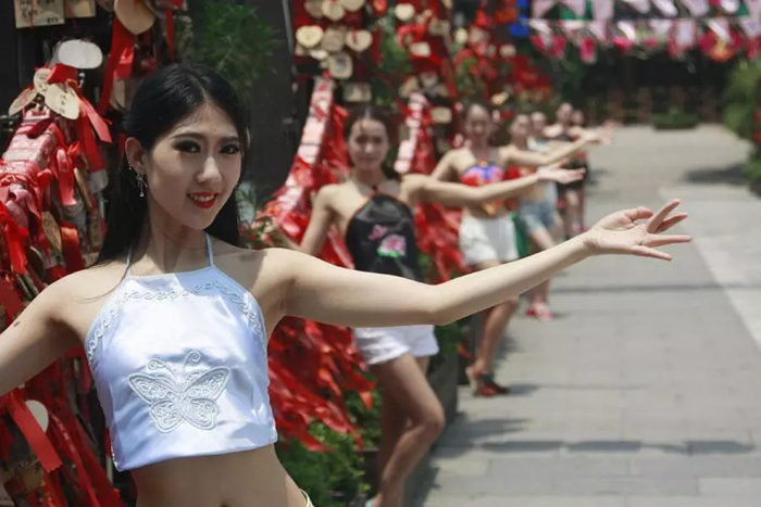 肚兜是中國古代女人的內衣,是閨房內的服飾,受傳統(tǒng)觀念的束縛,一直鮮露人前,隨著人們觀念改變,肚兜在融入了許多時尚元素后,慢慢的出現(xiàn)在人們的視野中。為了弘揚中華傳統(tǒng)文化,展示肚兜獨特的魅力,振興小鎮(zhèn)景區(qū)定于8月17日—8月19日舉辦十里紅妝肚兜秀。現(xiàn)場將有代表著唐宋元明清不同時代各種形式的肚兜展示,同時還有精彩的快閃、熱舞等表演,同時景區(qū)工作人員將以肚兜裝亮相,為賓客提供服務。