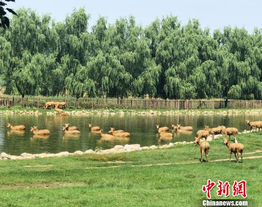 “麋鹿是中國的‘土著居民’,距今已有300多萬年的生命歷史,是中國堪與大熊貓媲美的珍稀野生動物?!北本┦锌茖W(xué)技術(shù)研究院麋鹿中心主任白加德稱,歷經(jīng)多個世代,麋鹿種群到明清時期只剩下數(shù)百只,人工飼養(yǎng)在位于北京南海子的皇家獵苑。后因永定河泛濫及八國聯(lián)軍侵占北京時遭殺戮和劫掠,麋鹿在中國徹底消失。1985年,散養(yǎng)在英國莊園的20只麋鹿,在中國與英國政府啟動的麋鹿重引進項目下,回到北京南海子麋鹿苑,這里是麋鹿原產(chǎn)地、模式種產(chǎn)地和最后的種群滅絕地,也是首個種群回歸地。