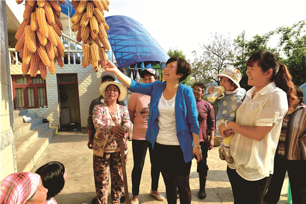 六盤水市產(chǎn)業(yè)扶貧帶頭人、全國十佳農(nóng)民、全國三八紅旗手余留芬 (中)