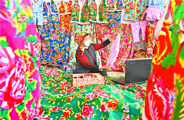 山東省淄博市沂源縣悅莊鎮(zhèn)西悅莊村,一名殘疾人電商在整理網(wǎng)銷的兒童唐裝。近年來,沂源縣積極利用電商平臺(tái),多方引導(dǎo)和幫助殘疾人通過“互聯(lián)網(wǎng)+”實(shí)現(xiàn)創(chuàng)業(yè)夢(mèng)。目前,全縣建立農(nóng)產(chǎn)品、工藝品等各類網(wǎng)絡(luò)創(chuàng)業(yè)平臺(tái)400余個(gè),幫助300余名殘疾人實(shí)現(xiàn)自主創(chuàng)業(yè)。(趙東山攝)