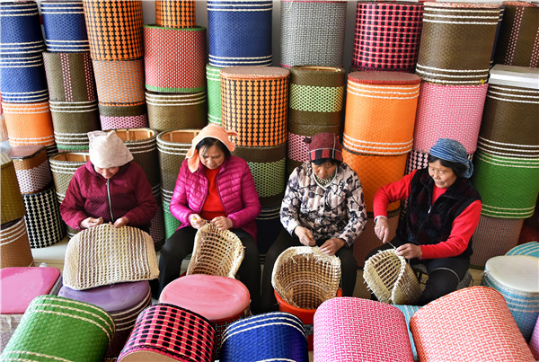 山東省淄博市沂源縣悅莊鎮(zhèn)西悅莊村的農(nóng)家婦女在加工草編制品。近年來,地處沂蒙山區(qū)沂源縣在推進(jìn)精準(zhǔn)扶貧的過程中,通過技能培訓(xùn)、崗位上門、產(chǎn)業(yè)推動(dòng)、資金扶持等舉措開展“巾幗脫貧創(chuàng)業(yè)增收工程”,引導(dǎo)和組織廣大農(nóng)家婦女參與以手工加工、社會(huì)服務(wù)、家門口增收為主的脫貧創(chuàng)業(yè)工作。目前,全縣有2萬(wàn)余名農(nóng)家婦女活躍在增收生產(chǎn)一線。 (趙東山攝)