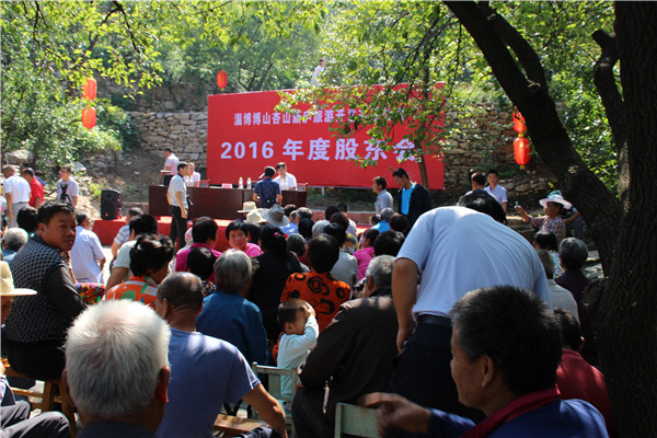 貧困戶變股東,圖為山東省淄博市博山區(qū)朱南村召開2016年度股東大會(huì)。2015年,朱南村充分利用財(cái)政專項(xiàng)扶貧資金,大力發(fā)展整村推進(jìn)項(xiàng)目建設(shè)。經(jīng)過村兩委會(huì)研究,并經(jīng)村民代表、貧困戶代表民主討論決定,將100萬(wàn)元中央財(cái)政專項(xiàng)扶貧資金作為股金投入公司運(yùn)營(yíng),注冊(cè)成立“杏山新廬旅游有限公司”。其中70萬(wàn)元折股量化給貧困戶,剩余30萬(wàn)元折股量化給村集體。