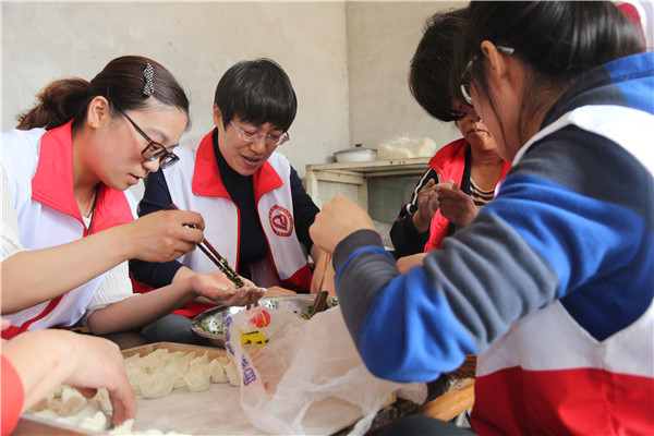 山東省淄博市齊都春雨愛心工作室志愿者為貧困戶包水餃