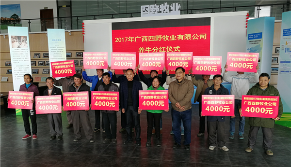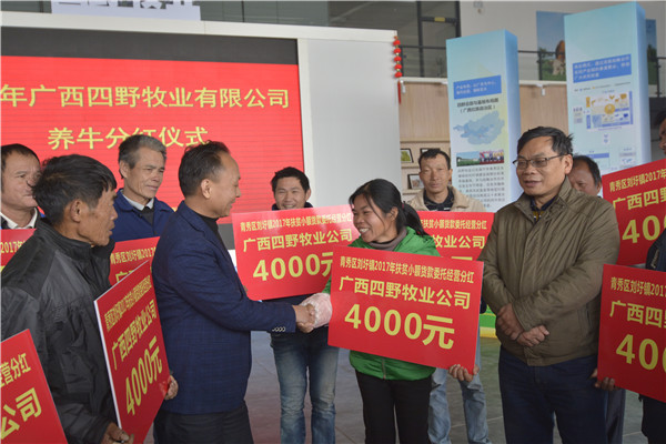 青秀區(qū)發(fā)展特色產(chǎn)業(yè)助力脫貧攻堅(jiān),圖為廣西四野牧業(yè)有限公司2017年度養(yǎng)牛分紅儀式。姚曉臨攝
