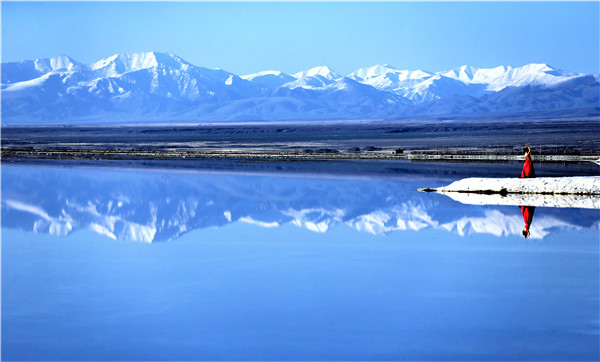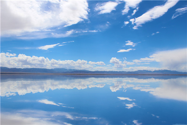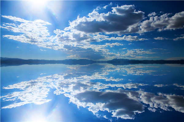 茶卡鹽湖形成于六千萬年前的地殼運動,經(jīng)過青藏高原遠古海洋億萬年的厚積,孕育了嘆為觀止的自然奇觀。茶卡鹽湖湖面海拔3059米,總面積105平方公里,是固液并存的鹵水湖。結晶鹽層的存在使得湖低平整,淺淺的湖水使得湖面波動輕微,高濃度鹵水增大了湖面張力,共同的原因讓茶卡鹽湖極容易產(chǎn)生鏡面反射。平靜的湖面沒有一絲波瀾,藍天、白云倒映湖中,而這樣的景色似乎沒有邊界,一直延伸到了遙遠的天際,和那連綿圣潔的雪山融為一體,分不清到底是真實還是虛幻的倒影,因此茶卡鹽湖被譽為“中國的天空之鏡”,“水映天、天接地、人在湖間走、宛如畫中游”,這就是茶卡鹽湖天空之鏡的生動寫照。