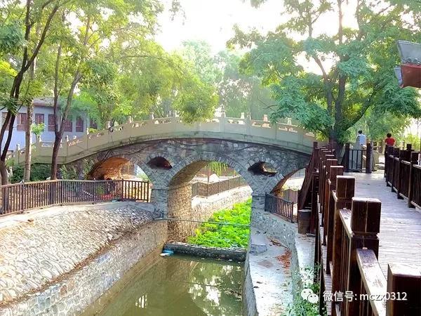 水系景觀帶位于最西部環(huán)山腳下,是對原河道進行清理平整、加寬加固并改造提升而成。充分利用原有涵洞景觀,在河道兩側建成彩磚鋪設的觀景帶,南側山腳沿河道用松木鋪建起伏的觀光長廊,下游水稍深的3處栽植了碧蓮、睡蓮。按照水系不同位置和特點,整個水系景觀分成五個部分,不但提升了漢墓山體保護功能,也為游客打造了休閑賞景、親子娛樂的好去處。