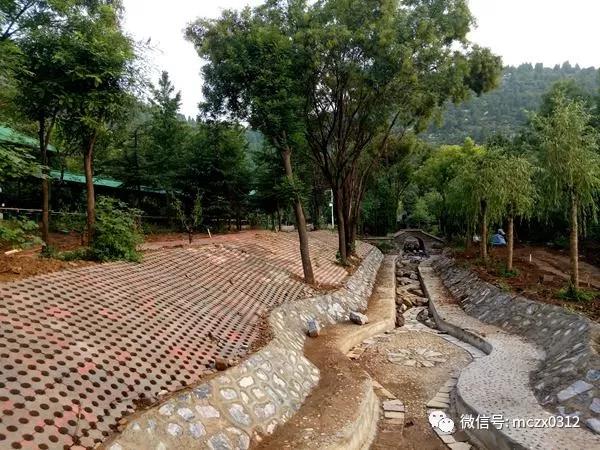 銀杏林緊鄰景區(qū)大門口,以綠色為主基調,綠樹成林、綠草鋪地,綠色掩映下是紅色彩磚嵌入的兩個“卍”字形步游路,形成銀杏陣。滿城區(qū)神星鎮(zhèn)有傳承300年的“卍”字祈福燈陣,“卍”為中華文化的重要符號,象征吉祥和神的保佑,游人漫步銀杏陣中,象征吉祥萬福,平安長壽的美好寓意。