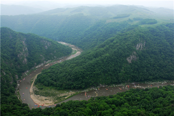 紅河谷系長白山余脈,經(jīng)河水多年切割成U字形狀,河水豐盈清澈,兩岸森林茂密、怪石林立,素有東北小三峽之稱。漂流河段20至50米寬度不等,0.8米左右的水深落差適中,40余處緩段、急段交替出現(xiàn),沿途迎客壁、雞冠巖、老艄、龍門跳、上山虎、雙龍艄、神龜送客、雙乳峰等天然景點(diǎn)讓您領(lǐng)略出大自然的鬼斧神工,漂流途中時(shí)而悠閑自在、時(shí)而有驚無險(xiǎn),頗有“山重水復(fù)疑無路,柳暗花明又一村”的情趣。