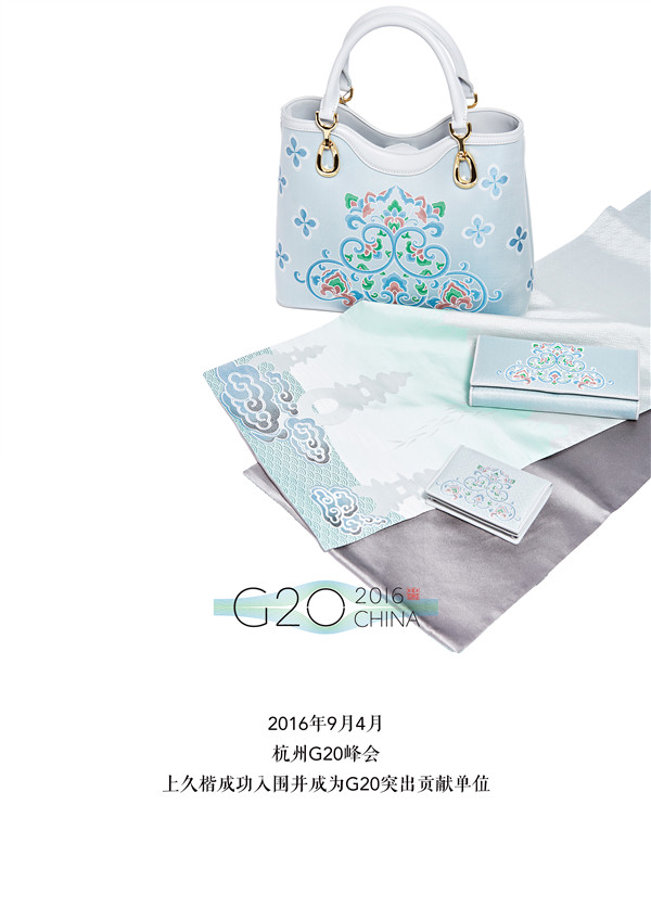 2016年12月,上久楷助力G20峰會并榮獲“杭州G20峰會禮品征集中作出積極貢獻”證書。在接到組委會的禮品征集函,邀請公司進行峰會禮品的創(chuàng)意設(shè)計時,公司根據(jù)組委會的具體要求,緊緊圍繞峰會主題,立足于“有創(chuàng)意、有創(chuàng)新、有特色、有精品”的設(shè)計理念,綜合藝術(shù)性與實用性進行創(chuàng)意策劃。在原料的選用、織造工藝、花型圖案、款式設(shè)計、后期整理等方面在進行創(chuàng)意研發(fā),使禮品既具有傳統(tǒng)特色能夠體現(xiàn)中國文化,又貼切2016年G20峰會主題展現(xiàn)時尚魅力。為上久楷的民族品牌之路,謀得新發(fā)展!