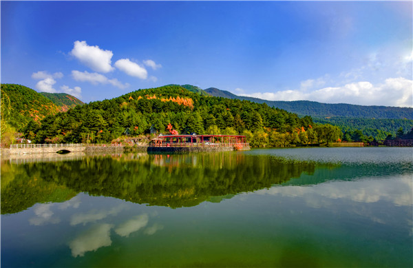 漢江發(fā)源地、國(guó)家濕地公園、國(guó)家3A級(jí)旅游景區(qū)漢水源森林公園。圖為漢水源森林公園月亮湖