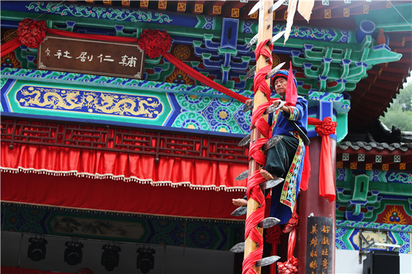 寧強(qiáng)是中國(guó)羌族儺文化之鄉(xiāng)圖為羌族儺戲絕技-上刀山