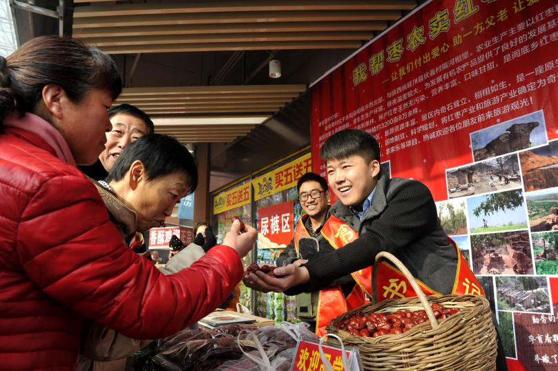 “紅”即紅棗產(chǎn)業(yè)。奇奇里村有3500畝棗樹。針對近年來秋季雨水多、棗會開裂腐爛,豐產(chǎn)不豐收、棗賤傷農(nóng)的雙重困擾,我們采取“雙管齊下”的辦法:一方面找技術(shù)支撐、政策支持。邀請省農(nóng)科院專家給予技術(shù)支持,使得有機(jī)紅棗畝產(chǎn)增收達(dá)到480元以上;牽線人壽財險,為1500畝優(yōu)質(zhì)棗樹投保,做到即便遇災(zāi)年,棗農(nóng)都可最高獲得每畝1000元的賠償。另一方面拓銷售渠道、致富門道。打造“永和珍寶”農(nóng)特產(chǎn)電商品牌,幫助村民銷售農(nóng)副產(chǎn)品近15萬元;開創(chuàng)紅棗樹認(rèn)領(lǐng)模式,每認(rèn)領(lǐng)一顆紅棗樹,向貧困戶捐助120元,年底收獲紅棗10斤。在奇奇里村的帶動下,全縣共認(rèn)領(lǐng)棗樹、核桃樹3600余株,惠及全縣3000余戶貧困戶,認(rèn)領(lǐng)金額達(dá)43萬元。我很榮幸作為特邀嘉賓參加央視《食尚大轉(zhuǎn)盤》節(jié)目錄制,向全國電視觀眾推廣永和紅棗,不斷實(shí)現(xiàn)讓紅棗樹成為“搖錢樹”的夢想。