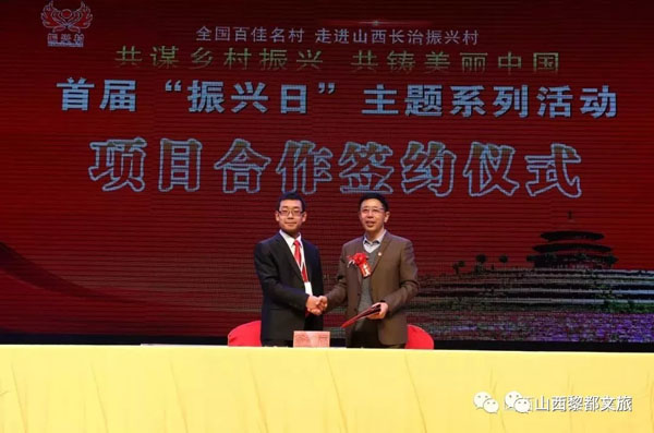 10月18日,為期兩天的首屆“振興日”主題系列活動在全國文明村鎮(zhèn)、全國十佳小康村、全國美麗休閑鄉(xiāng)村——長治縣振興村落下帷幕?;顒又?,我省首個鄉(xiāng)村振興人才培養(yǎng)教育平臺——“太行鄉(xiāng)村振興人才學(xué)院”揭牌成立、山西晉旅投資集團股份有限公司與長治縣振興鄉(xiāng)村生態(tài)文化旅游區(qū)合作簽約;“大寨糧倉”名優(yōu)特農(nóng)產(chǎn)品推特平臺代表與振興集團合作簽約;全國各地百佳名村和美麗村莊代表、首批“田園才子”和百佳名村代表積極對接長治百村扶貧扶智行動,與長治縣百村代表簽約合作……這些意義深遠的活動標志著我縣又一批鄉(xiāng)村振興的文旅融合項目落地。