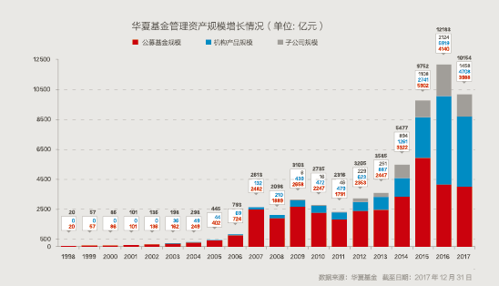 華夏基金管理有限公司成立于1998年4月9日,是經(jīng)中國證監(jiān)會批準成立的首批全國性基金管理公司之一,構(gòu)建了以公募基金和機構(gòu)業(yè)務(wù)為核心,涵蓋華夏香港、華夏資本、華夏財富的多元化資產(chǎn)管理平臺。截至2017年末,華夏基金母公司及子公司管理資產(chǎn)規(guī)模突破1萬億元,服務(wù)超過5200萬戶個人投資者以及4萬戶機構(gòu)客戶,盈利規(guī)模及分紅穩(wěn)居公募基金榜首。