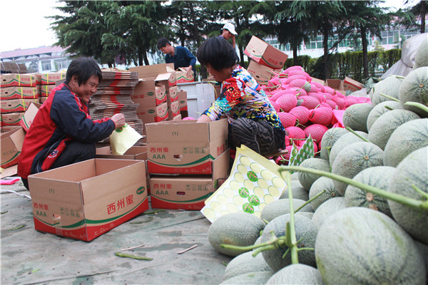 (二)加快新型農(nóng)業(yè)經(jīng)營主體培育。在人力資源上,街道積極配合,幫助合作社招聘會管理、懂技術(shù)的高級人才,不斷發(fā)育壯大新型主體,進一步提升市場適應能力、帶動農(nóng)民致富能力,推動農(nóng)業(yè)競爭力和效益穩(wěn)步提高。一是大力發(fā)展合作社和經(jīng)紀人隊伍,擴大品牌影響力。全街道已成立家庭農(nóng)場、農(nóng)民瓜菜專業(yè)合作社200家,西瓜經(jīng)紀人隊伍發(fā)展到5600多人,按照“優(yōu)中選優(yōu)”的原則成立了西瓜經(jīng)紀人協(xié)會,現(xiàn)已發(fā)展會員2000人,大大提高了農(nóng)民“抱團”闖市場的能力和西瓜品牌的宣傳能力。其中,“寶城”牌西瓜被評為“濰坊市(果品類)十佳品牌”,“昌樂”西瓜榮獲國家地理標志證明商標。引進建設了英軒實業(yè)、山東正大科技有限公司、濰坊大地果蔬有限公司、魯中瓜菜有限公司等農(nóng)業(yè)龍頭企業(yè)17家,農(nóng)業(yè)的產(chǎn)業(yè)化程度高。二是加強組織領導,加大政策扶持。近年來,昌樂縣委、縣政府出臺了一系列支持農(nóng)業(yè)發(fā)展的政策。加大農(nóng)業(yè)龍頭企業(yè)財政和金融扶持力度,對當年被確定為市級、省級、國家級的重點農(nóng)業(yè)龍頭企業(yè),分別給予5萬元、10萬元、20萬元獎勵;對發(fā)展?jié)摿Υ?、貢獻突出的市級以上重點農(nóng)業(yè)龍頭企業(yè),經(jīng)縣農(nóng)業(yè)局根據(jù)貼息對象標準認定后,給予10-50萬元財政貼息補助。扶持發(fā)展農(nóng)民專業(yè)合作社,對達到“四統(tǒng)一”的農(nóng)民專業(yè)合作社,經(jīng)縣經(jīng)管局、農(nóng)業(yè)局、畜牧局按照相關標準認定后,給予3萬元獎勵。對當年被國家農(nóng)業(yè)農(nóng)村部確定為全國定點農(nóng)產(chǎn)品批發(fā)市場的,給予20萬元獎勵。對當年建立農(nóng)產(chǎn)品質(zhì)量檢測室并開展規(guī)范檢測工作的農(nóng)業(yè)龍頭企業(yè)或農(nóng)民專業(yè)合作社,經(jīng)縣農(nóng)業(yè)局、畜牧局驗收合格后,給予2萬元獎勵。對取得無公害、綠色、有機食品認證的單位,每個產(chǎn)品分別給予1萬元、2萬元、3萬元獎勵。這一系列扶持發(fā)展政策的制定和落實,對寶都街道西瓜產(chǎn)業(yè)的發(fā)展起到了巨大的推動作用。