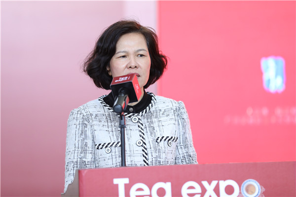 開(kāi)幕典禮上,中國(guó)茶葉流通協(xié)會(huì)秘書(shū)長(zhǎng)梅宇,2018中國(guó)(廣州)國(guó)際茶業(yè)博覽會(huì)、第十九屆廣州國(guó)際茶文化節(jié)承辦單位廣州益武國(guó)際展覽有限公司董事長(zhǎng)胡衛(wèi)紅分別致辭。